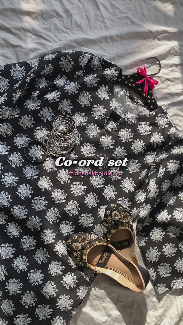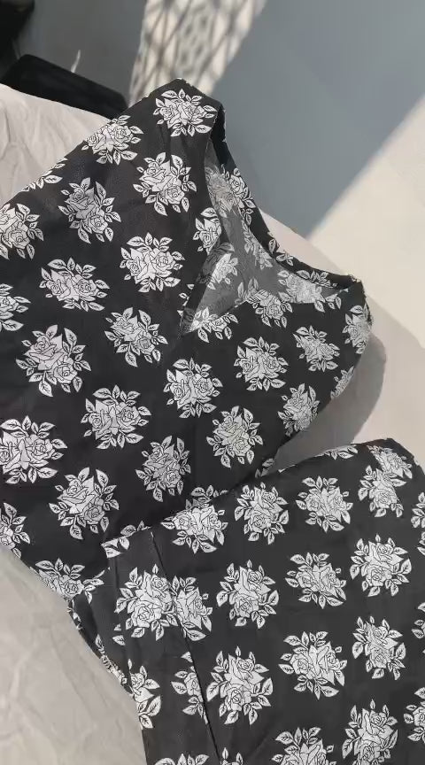 This lounge set features a soft cotton fabric with a charming floral allover print, offering both comfort and style for your relaxed moments. The black shirt pairs effortlessly with matching pajama trousers, designed to provide a cozy fit in sizes S through XL. Perfect for unwinding at home while feeling effortlessly put together.